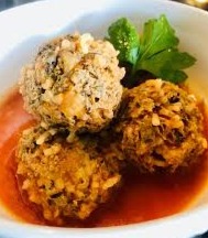 Sirva um pu dois bolinhos com a sopa, por prato com um pão pita torrado e 1 quarto de limão